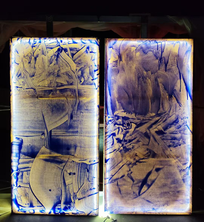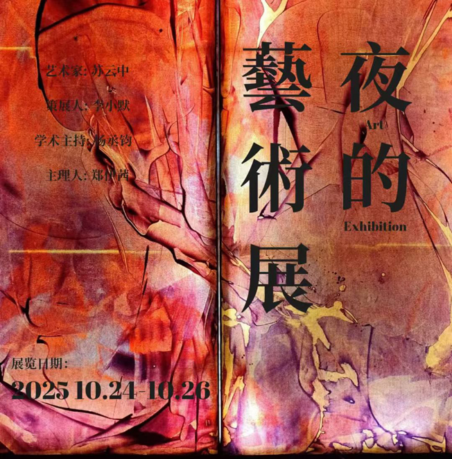 本次展览以“跨界”为核心学术脉络,突破传统艺术展的单一形式,创新性融合彩色丙烯绘画、主题音乐与现场装置艺术三大媒介,构建起“视觉与听觉共振”的沉浸式学术探索场域。展览以丄美术馆驻馆艺术家苏云中的作品为核心主轴,其创作深度契合当代艺术“感知研究”的学术方向——既根植于东方水墨的精神结构,又延伸至当代视觉文化的感知逻辑,通过色层叠加与光感控制,在二维平面上构建出具有心理维度的视觉空间。