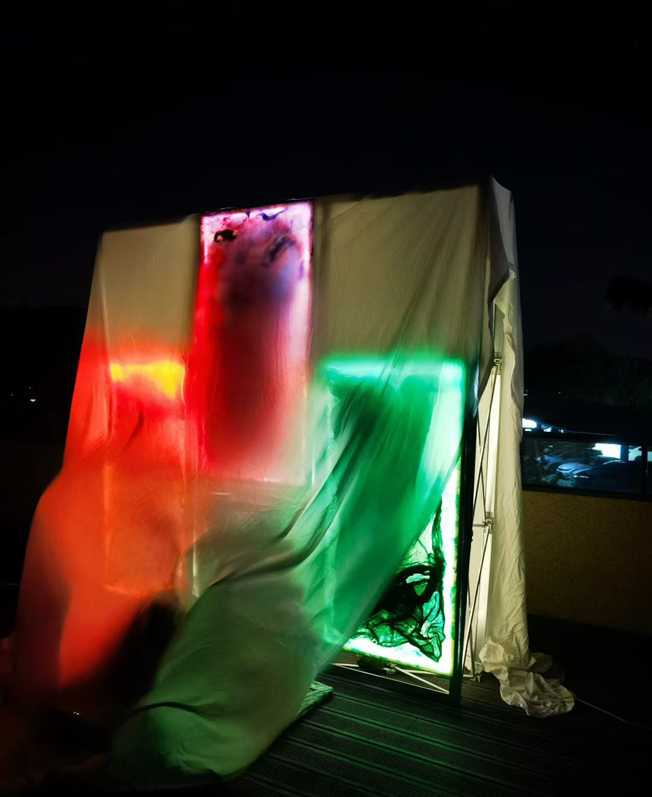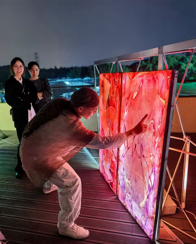 从学术价值来看,展览重点呈现了苏云中对“视觉与意识互动关系”的持续探索。此次展出的八件彩色丙烯作品以半透光结构悬挂,伴随定制主题音乐与观众的感官参与,将艺术从“静态观看”推向“动态共感”,形成绘画、装置、声音多媒介流动的交叉结构。这种实践直指当代艺术核心命题:在生活方式融合的背景下,艺术如何成为奢侈体验的精神核心。苏云中通过作品给出回应——艺术的本质是思想的可视化,每一件作品既是形式呈现,也是一次关于“感知流动性”与“意识具象化”的观念演绎。