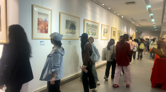 在开幕式现场环视四周,人头攒动,观展的嘉宾和学子将有大几百人。其中有来自湖南师范大学美术学院、中南大学建筑与艺术设计学院、湖南大学传媒学院、湖南工商大学艺术设计学院等学院的学子,也有社会各界人士,热闹非凡。