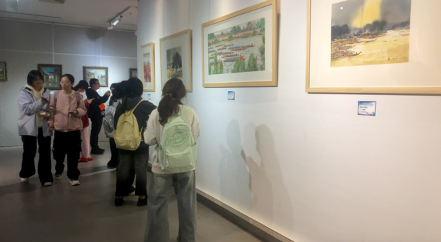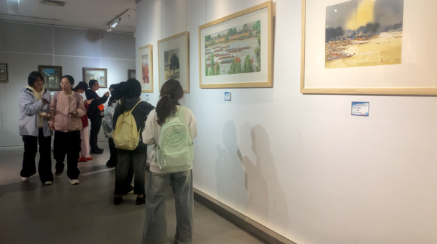 本次展览创新采用“展厅写生作品+非遗龙舟+文旅号子”三位一体模式:作品区水彩、油画、国画高悬,再现“梦境道州”视觉盛宴;非遗区大小龙舟蓄势待发,重现龙舟赛事雄姿;走廊区《道州赋》、锣鼓、号子交相呼应,欢呼不断。