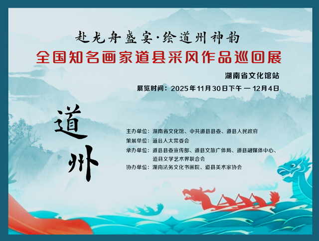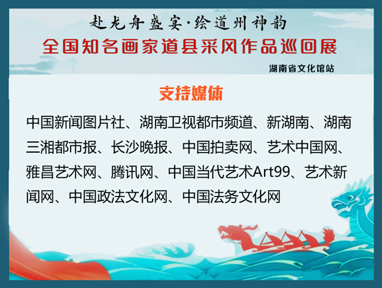欣闻“赴龙舟盛宴·绘道州神韵”全国知名画家道县采风作品巡回展在湖南省文化馆隆重启幕,我谨向道县县委、县人民政府,湖南省文化馆、全体艺术家与策展团队,致以最热烈的祝贺!