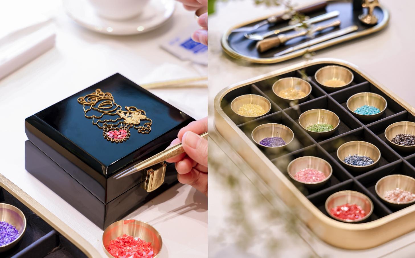 展览期间特别设立“非遗螺钿”体验活动,以“醒狮宝匣”为主题,将中国非遗文化趣味性地传播给大众。宾客通过亲手完成螺钿镶嵌的局部工序,得以近距离观察传统工艺的精密度与时间成本,深刻感受螺钿镶嵌的精妙之处。让东方工艺不再停留于表面,而成为一种可感知的真实体验。
